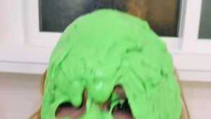 New model MJ has her first-ever messy experience getting green slimed fully in the nude. This is a smooth cake batter sliming delivered nice and slowly--elite coverage in this scene. Starring: | ||||