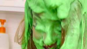 Angela gets slimed with two gigantic buckets of green slime, made from a new concoction of basically everything in the groceriy store, dumped over her while she's fully in the nude! Starring: | ||||