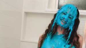 A butt-naked Regan slowly slimes herself with a gigantic bucket of thick chocolate cake batter! Starring: | ||||