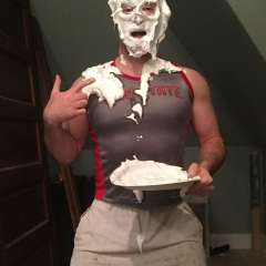 Balti was surprised by wetjeanguy with a big sloppy cream pie to the face